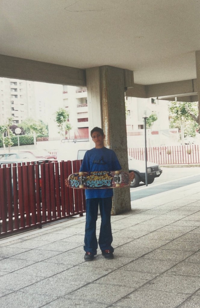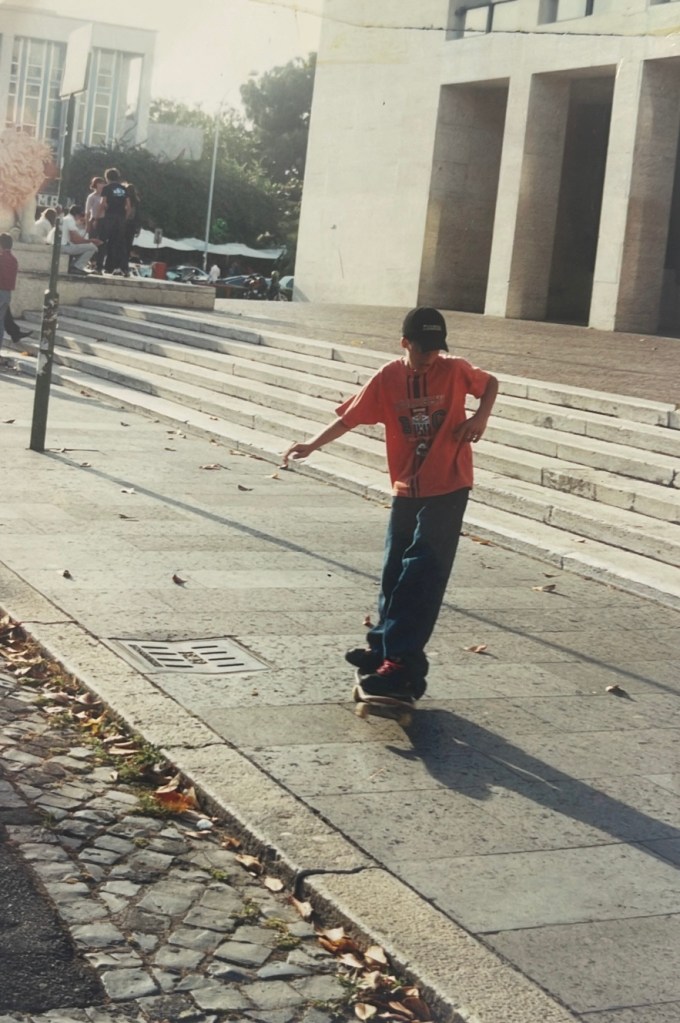 Ricevetti la mia prima tavola semi professionale da mio padre nel 1998 e subito dopo incomincia a skatere. Pochi anni dopo sotto casa mia c’era un ragazzo Alessandro Ascone detto “Er Pomezia” che girava con questo skateboard completamente professionale, una Santa Cruz precisamente (ancora mi ricordo la grafica gialla e nera col logo Sant Cruz in altro a destra), lui è la persona che mi ha introdotto veramente allo skateboarding. Eravamo sempre assieme ed ho imparato molte cose tecniche da lui, uno degli skater con più pop in assoluto che io conosca.